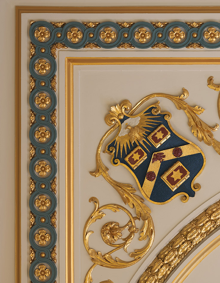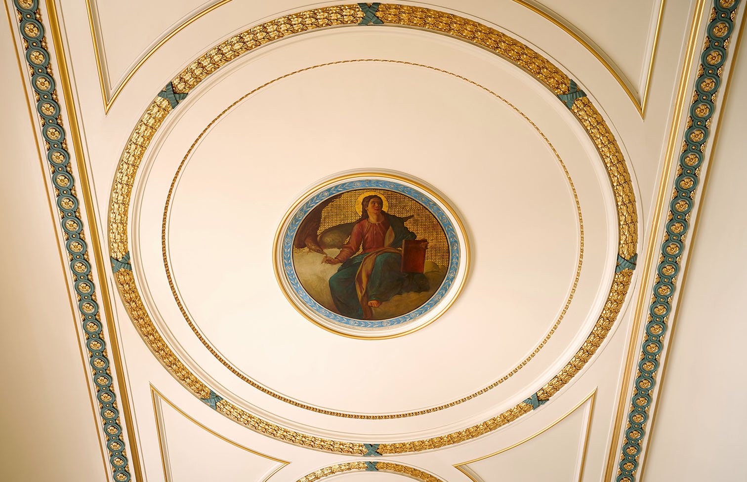 A feature of this project is the central ceiling canvas which was conservation cleaned by our specialist team of conservators to remove years of dirt.